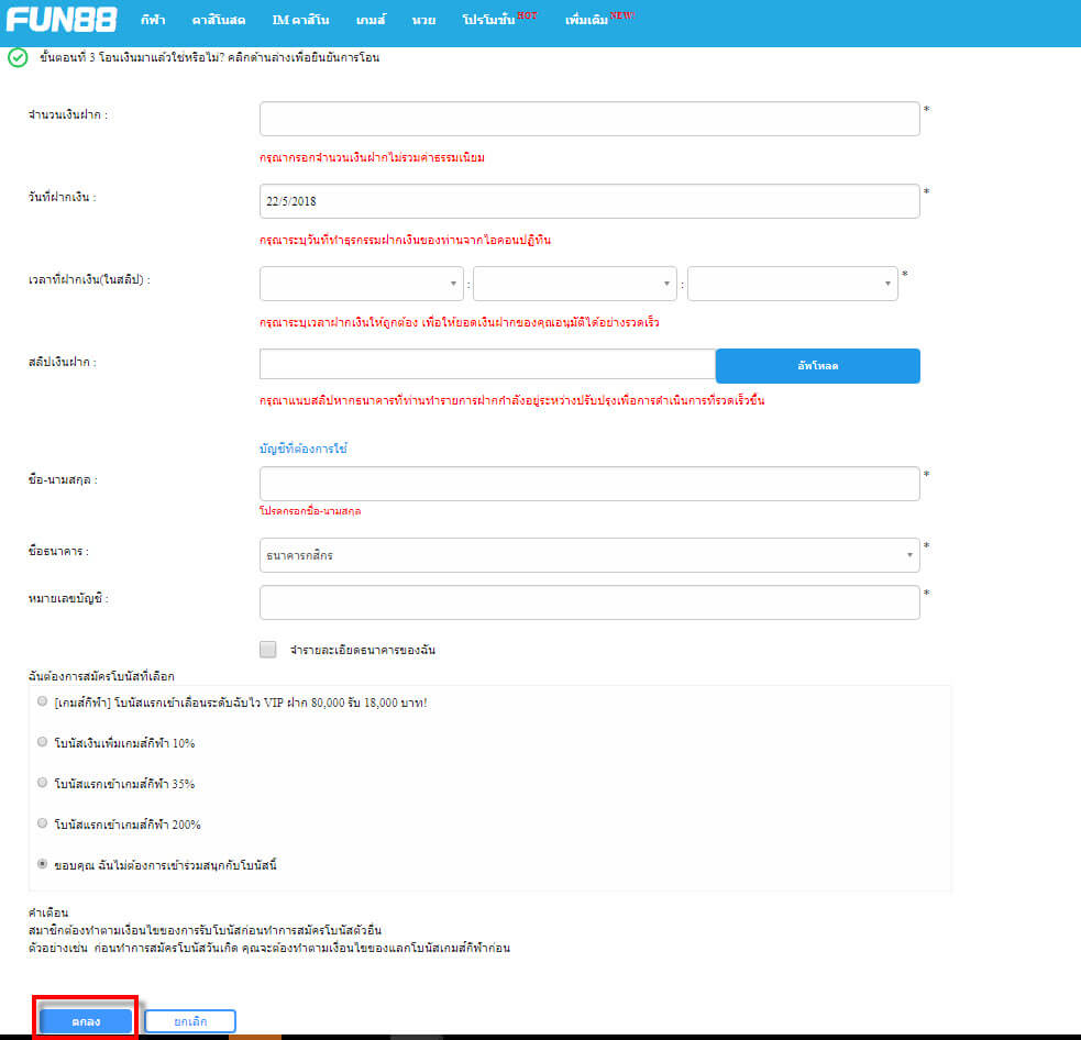 วิธีแจ้งการฝากเงิน เข้า FUN88 - fun88thaworldcup.com